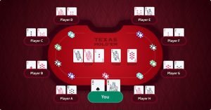 How many people can play varies slightly from casino to casino. In theory, 20+ people could play at a single Texas Hold ‘Em table. In practice, most casino/online poker sites limit tables to around 10. Any more than 10 or 12 players at a table and hands simply take too long to play out.